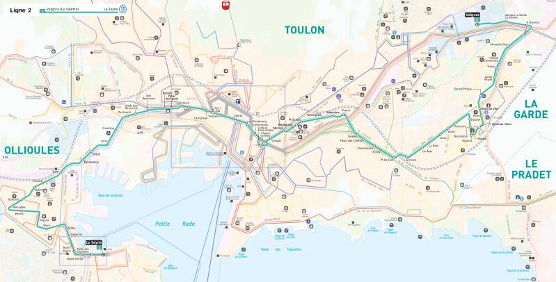 Elle dessert le port de La Seyne, l’hôpital de La Seyne, la Cité Berthe, le collège Henri Wallon, la Gare de La Seyne-Six Fours, la Pyrotechnie, Bon Rencontre et le Pont du Las à l’identique de sa prédécesseuse