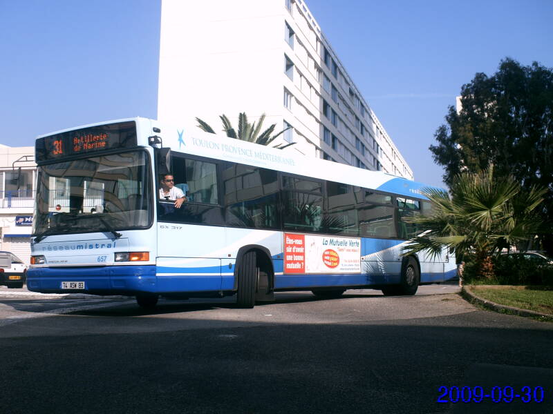 Le GX327 N°753 est vu longeant les voies de l'ancien couloir bus et de la Gare de Ste Musse en direction d'Artillerie de Marine