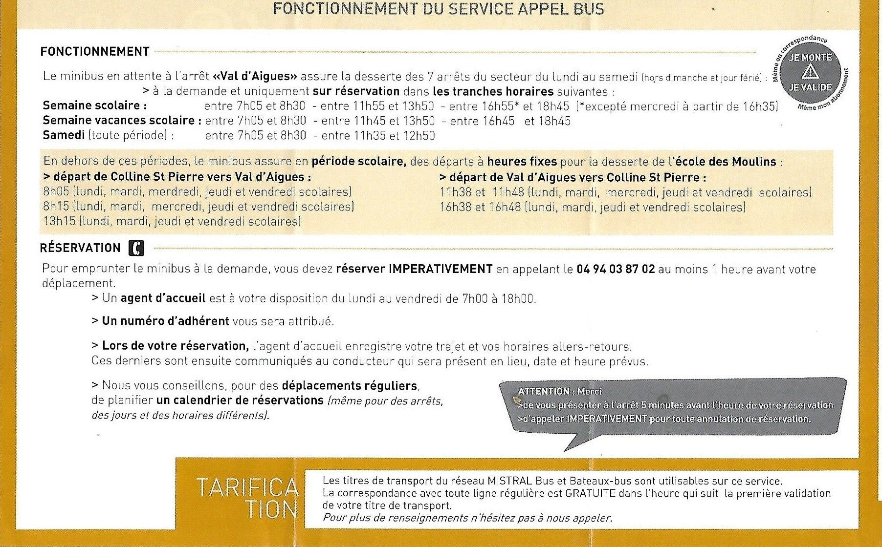 Certains services sont assurés en horaires réguliers uniquement sur les 4 arrêts de la Colline pour desservir l'école située à proximité du point d'attente.
