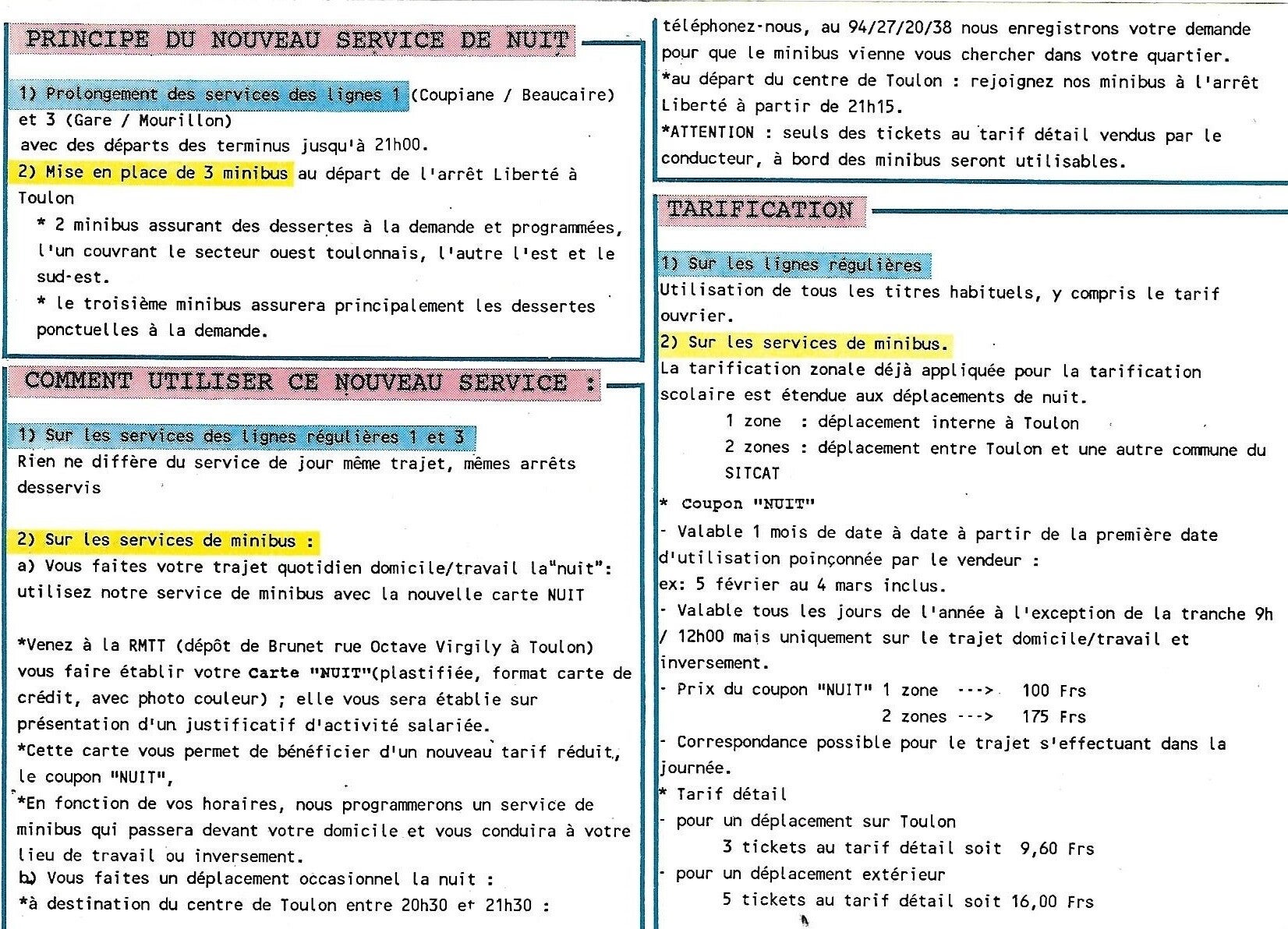 Le 05 mai 1986 est mis en place un service de soirée tous les jours de 21h15 à 00h00.