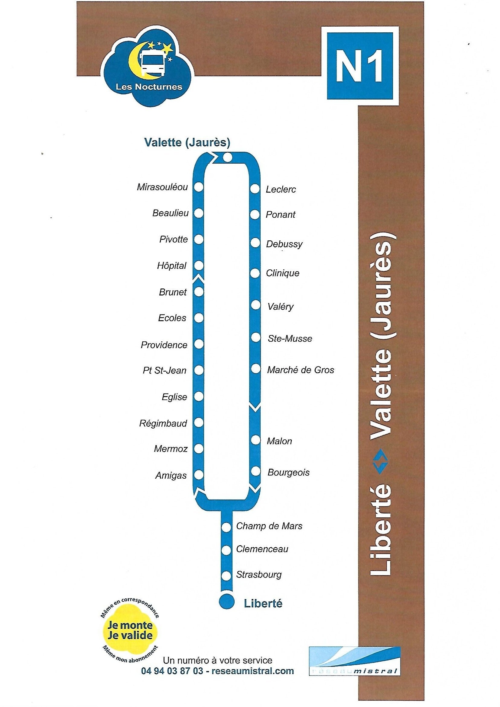 N1 : Liberté > Jaurès (Valette) > Liberté
