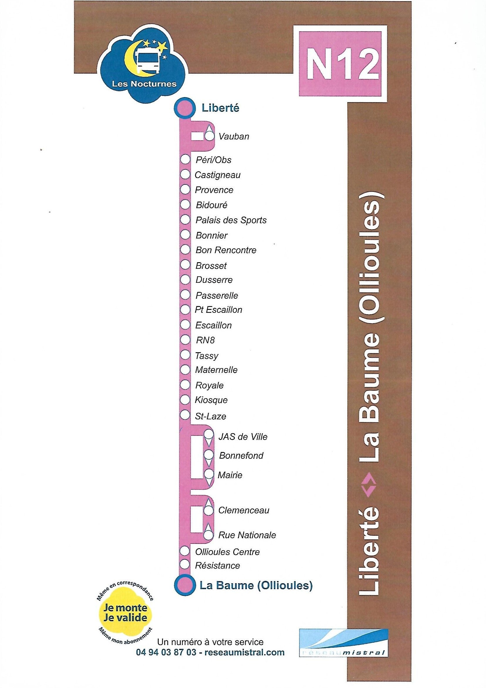 N11 : Liberté <> Hyères Centre (assurée par la Sodetrav)