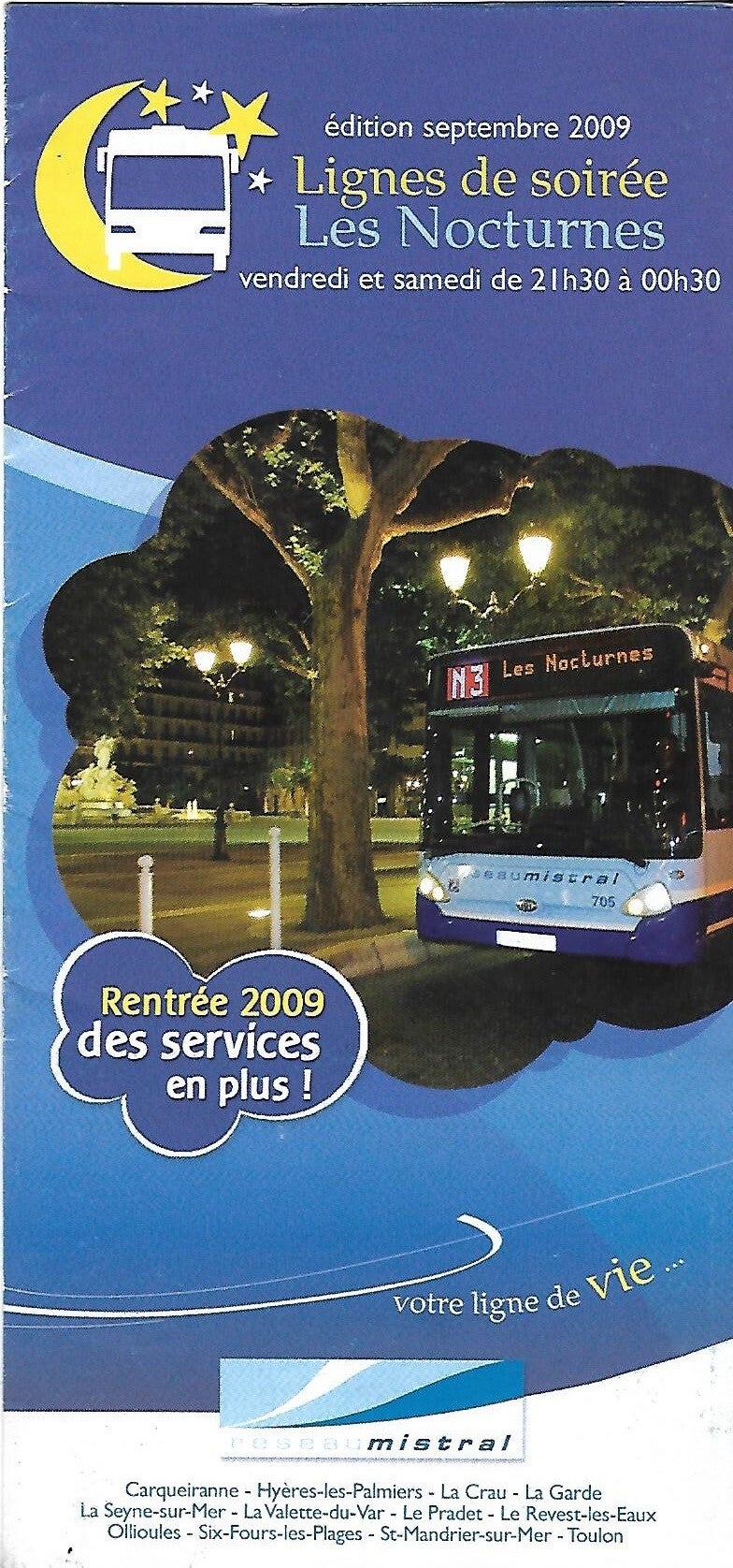 La rentrée 2009 voit une révolution, les vendredis & samedis un service de bus de soirée remplace les Taxibus. Au départ de liberté de 21h00 à 00h30 ils assurent des trajets sous forme de boucles ou reprennent le trajet de certaines lignes de jour. L’ensemble des 12 communes est desservi par bus avec 2 lignes de bateaux bus. Numérotés N1 à N12, les lignes sont réparties sur les transporteurs du secteur. Voici la liste des lignes :