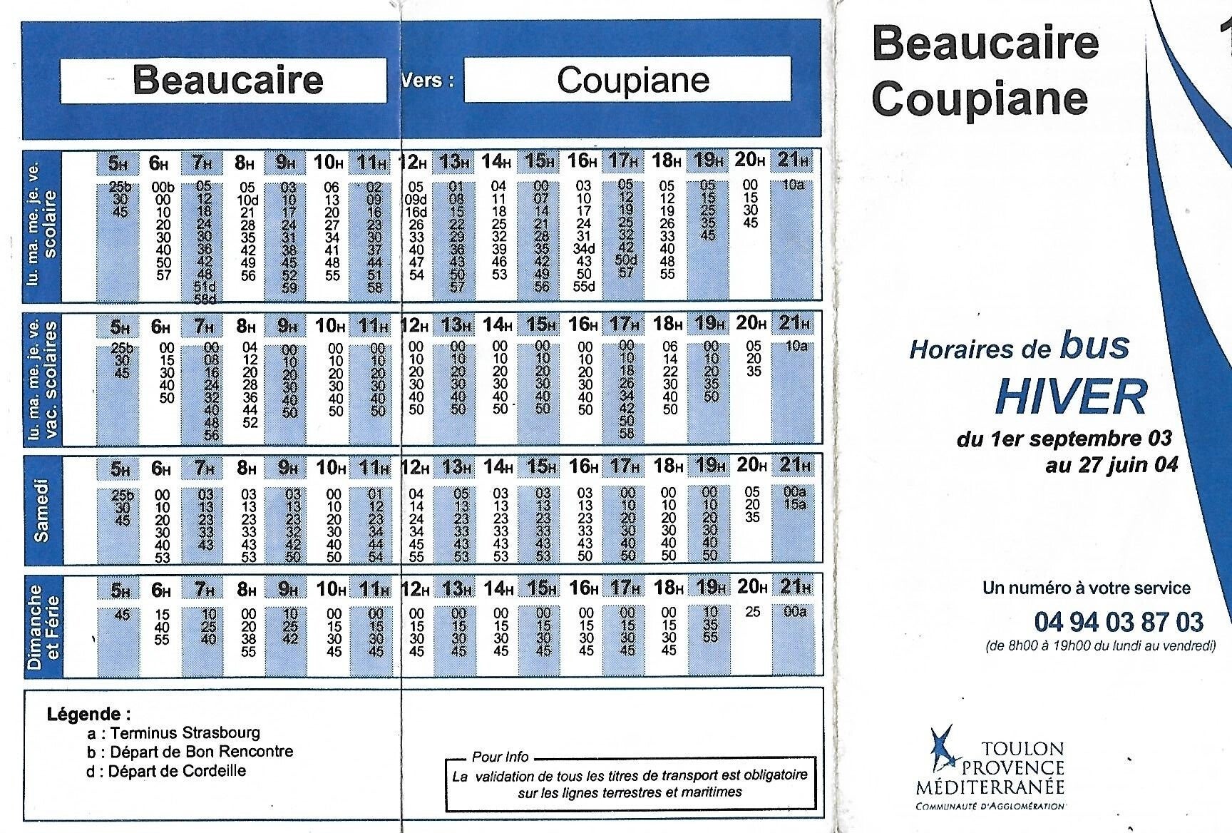 - Septembre 2016 : Le nouveau service de soirée simplifie la ligne qui garde son numéro en soirée et circule désormais entre Coupiane & Porte d’Ollioules.
