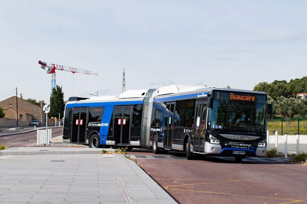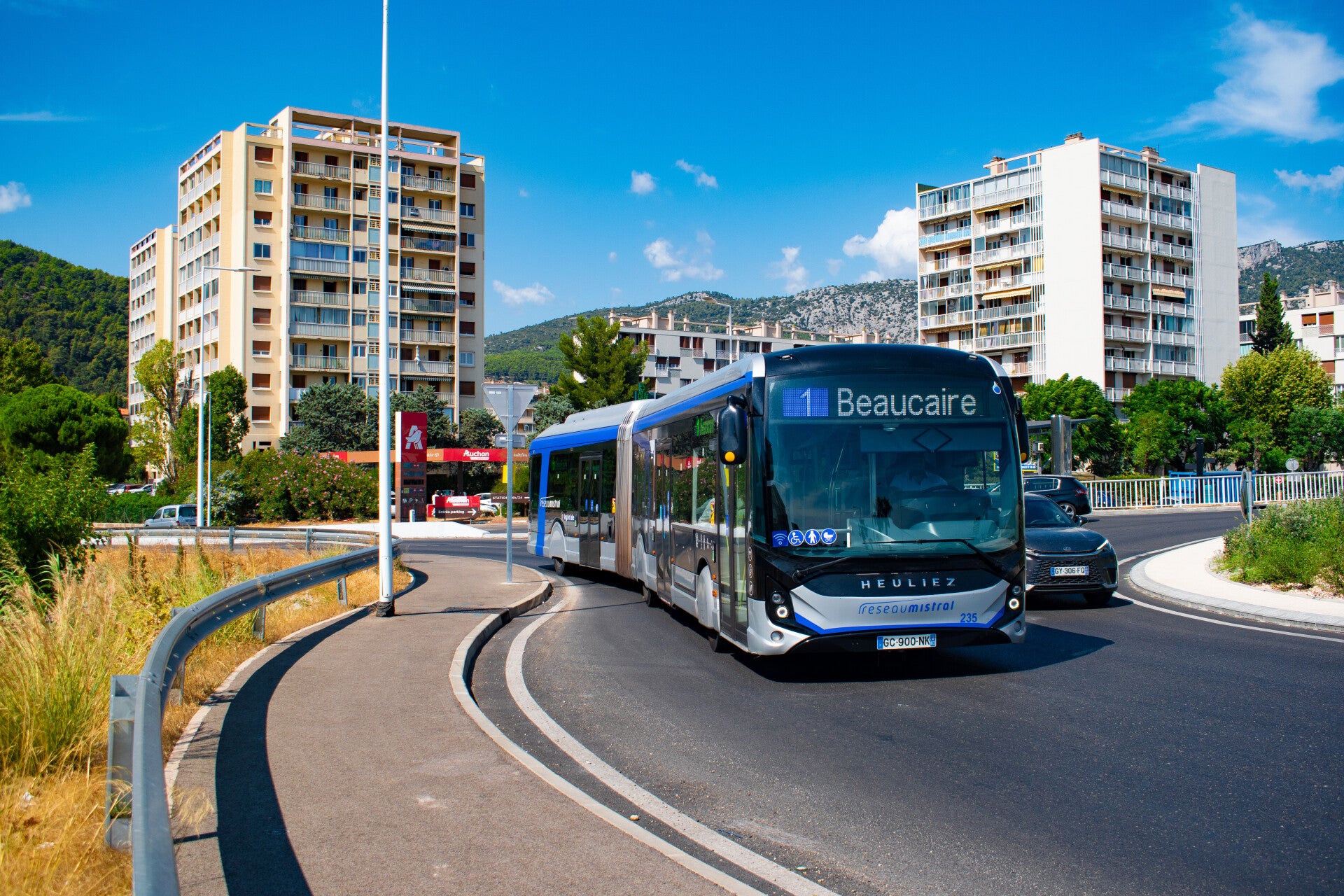 <- GX Linium Hybride Articulé N°235 entre les arrêts Mirasouléou et Nice direction Beaucaire