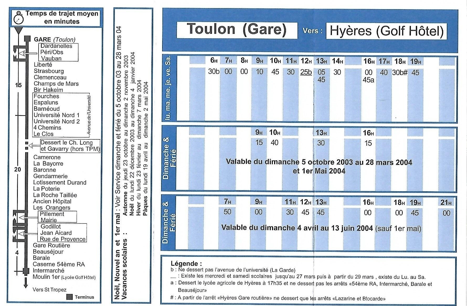 - Mai 2005, la ligne 103 voit son terminus Toulon Gare reporté dans la nouvelle Gare Routière de Toulon.