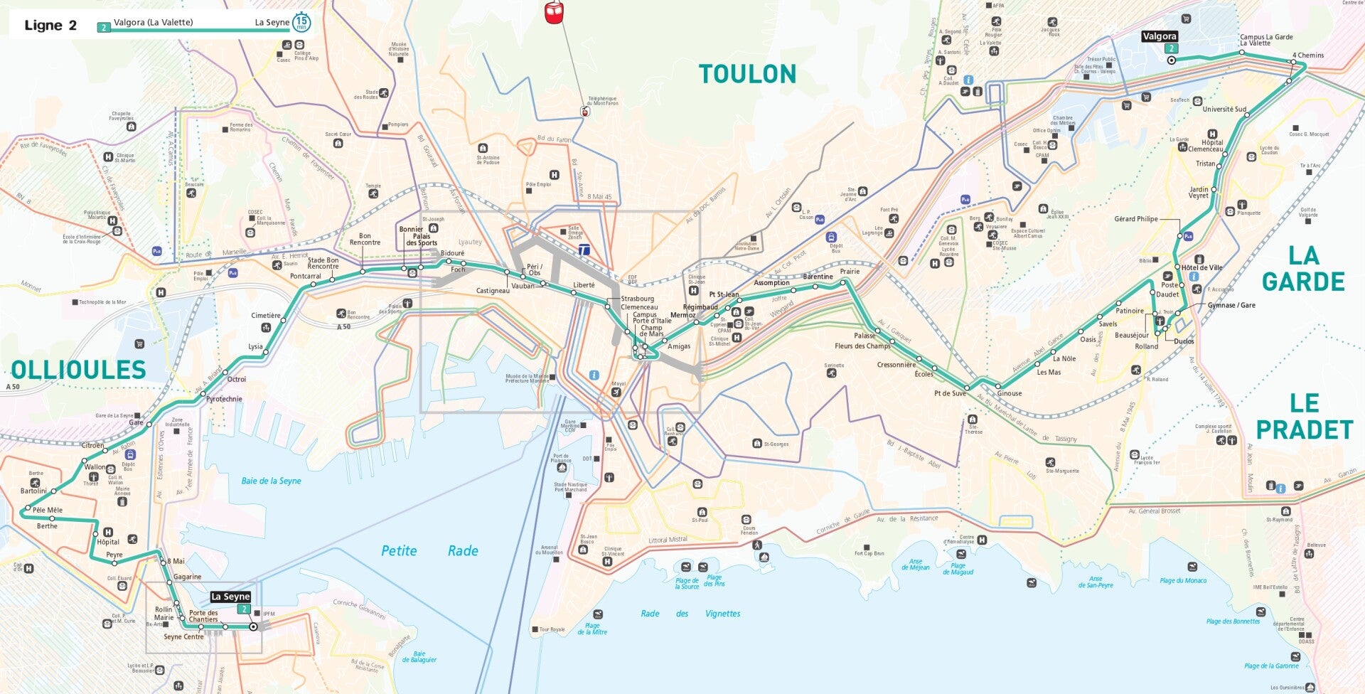 Dans un temps que les moins de 30 ans ne peuvent connaitre, une desserte similaire existait déjà avec les lignes 189 & 198 . Ces lignes reliaient La Garde à La Seyne, d’où le nom de caméléon de notre ligne 2