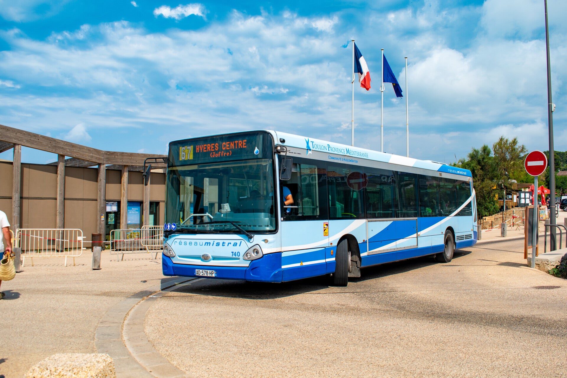 Nous laissons les lignes 63 & E65 desservir le port d’Hyères et nous filons plein sud le long des plages.