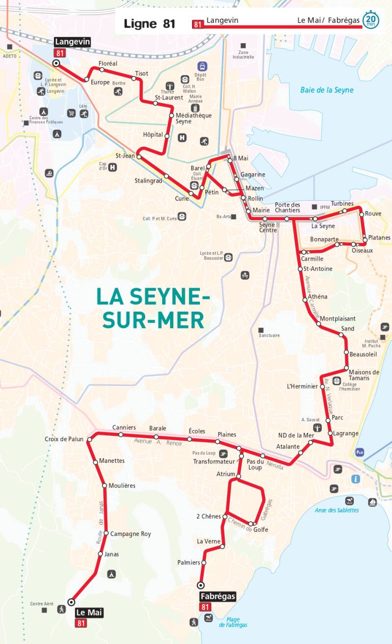 La ligne rejoint l'hôpital de La Seyne via l'Av. Jules Renaud en desservant les arrêts Médiathèque (Seyne) et Hôpital (sur le couloir bus).