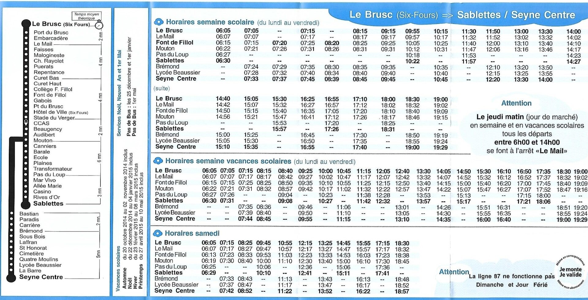 A savoir que les jours d’événements au Brusc et jours de marché, la ligne est limitée à l’arrêt Le Mail.