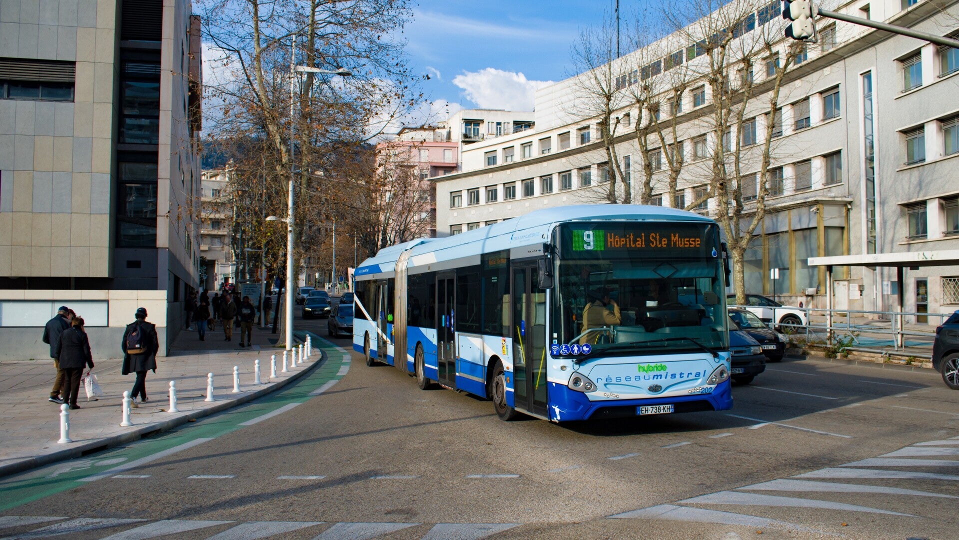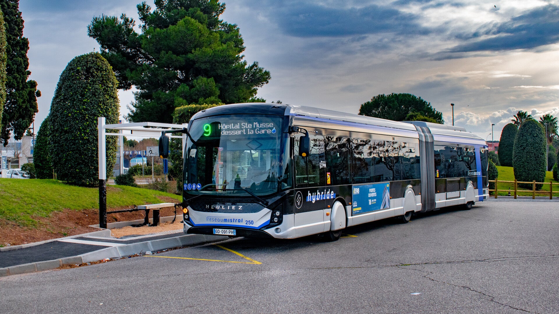 GX Linium Hybride Articulé N°252 sur le Boulevard des Armaris entre les arrêts Ecoles & Poncette, en direction de Hôpital Ste Musse