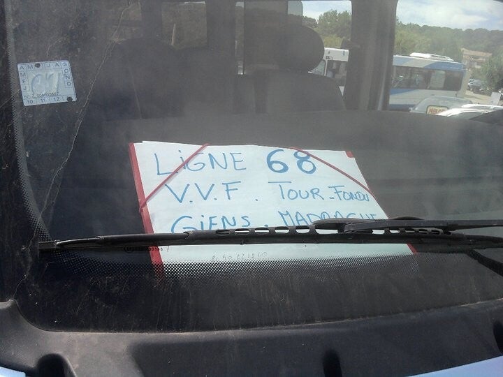 La Sodetrav faisait rouler des véhicules "exotiques" sur la ligne comme en témoigne ce Renault Master PMR avec sa feuille de papier en guise de girouette en 2010
