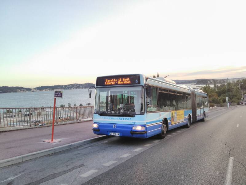 La fréquence est en moyenne toutes les 5 à 10' direction Mourillon et les retours vers le centre-ville toutes les 2 à 3' (dès que les bus sont pleins, ils partent).