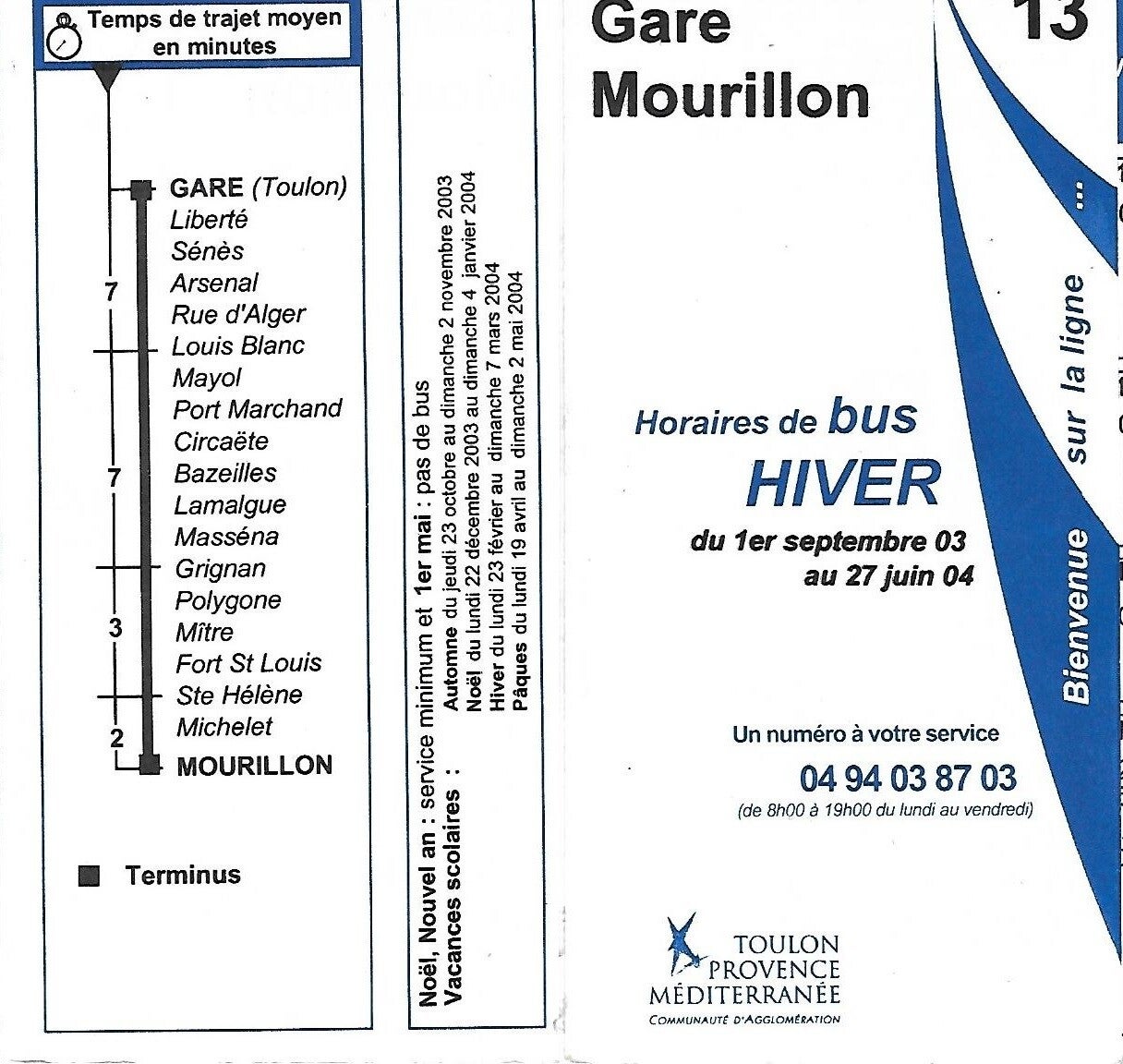 L'indice 13 est supprimée à la rentrée 2004, ses services sont intégrés à la ligne 3 en hiver et à l'été 2005 le renfort des plages est en ligne 23 entre Gare Toulon & Plages Mourillon par l'itinéraire de cette dernière.