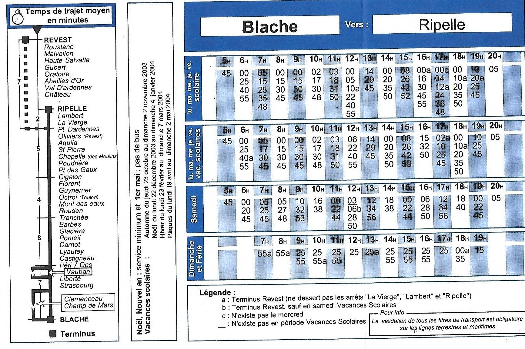 Nous allons étudier le dernier tracé de la ligne. Pour cela direction la Rue St Bernard à Toulon au terminus Blache pour le départ de notre revestoise.
