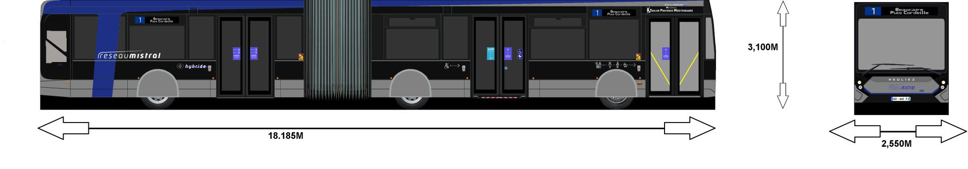 Long de 18,185M, Larges de 2.550M et Hauts de 3.100 ils ne passent pas sous la trémie Mayol.
