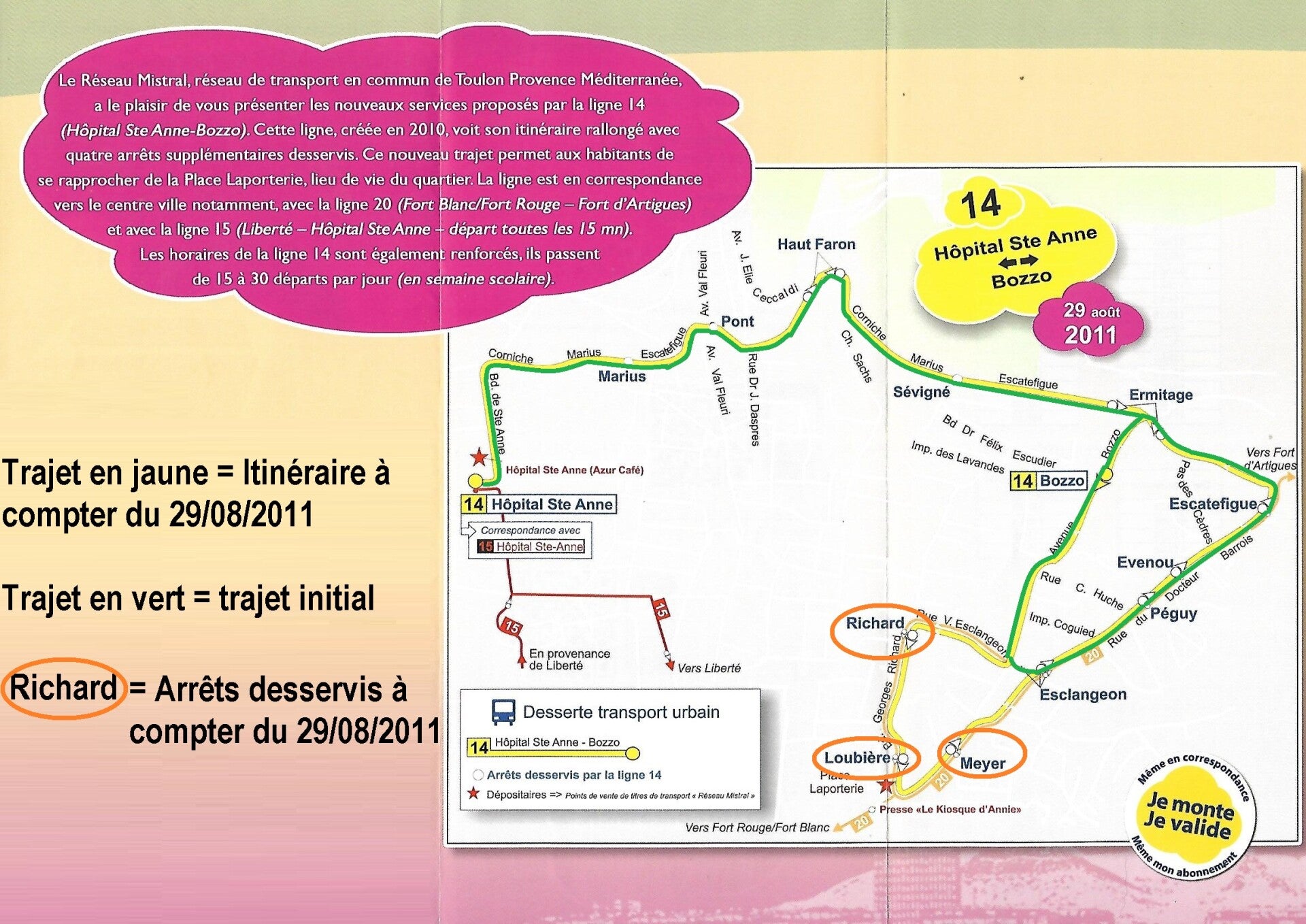 Pour rectifier le tir, le 29 août 2011 le trajet est modifié pour desservir le cœur du quartier de la Loubière et les horaires sont modifiés pour mieux correspondre aux attentes des usagers.