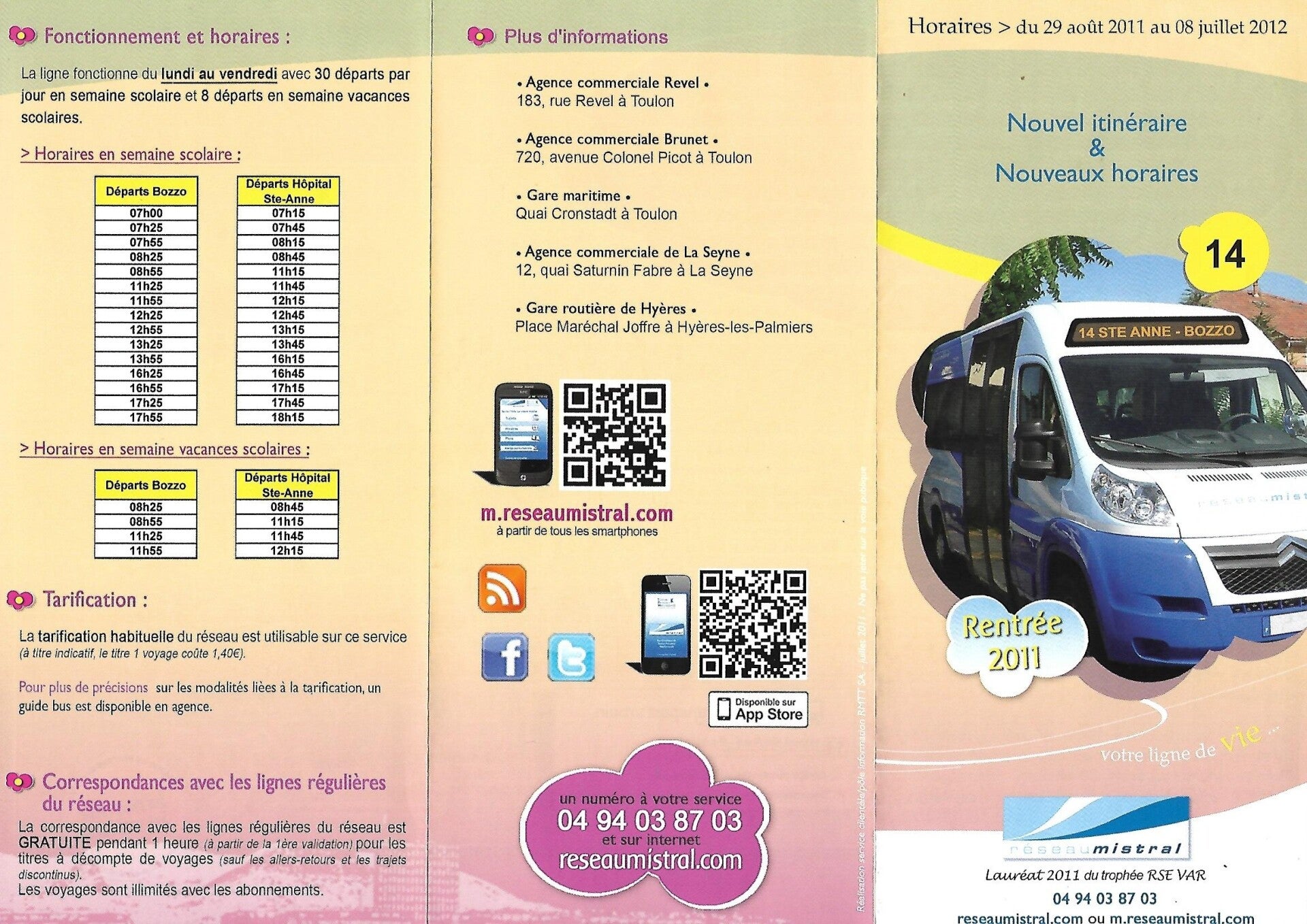 Ci-dessus fiche horaire de l'appel bus et exemple de girouette du service faute de photos de la desserte.
