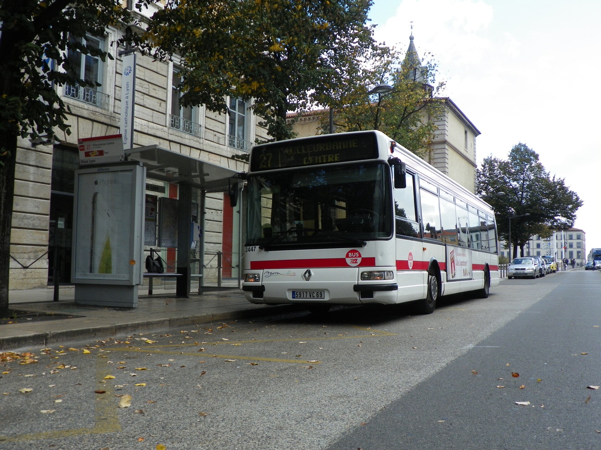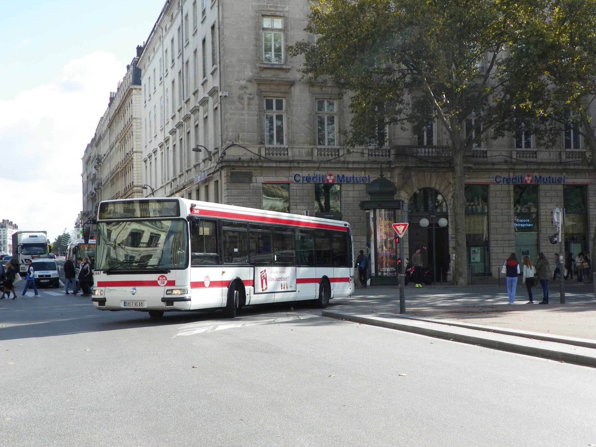 2447 quittant la Place Bellecour direction Villeurbanne Centre sur la ligne 27